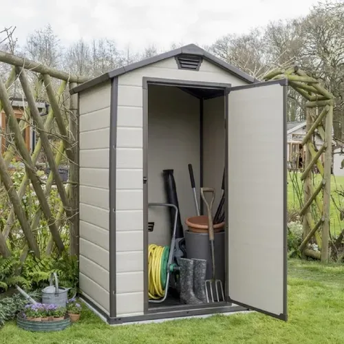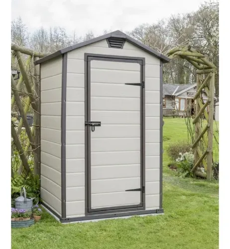 Altamente compacto y duradero, el Manor 4x3 brinda una solución de almacenamiento ordenada a sus espacios más reducidos, especialmente nichos entre la casa y la cerca. Cuenta con una construcción de doble pared resistente a la intemperie y un panel de piso que mantiene los artículos almacenados limpios y secos. Este cobertizo está ventilado para mayor seguridad, se puede cerrar con llave para mayor seguridad y se ensambla fácilmente con herramientas domésticas.